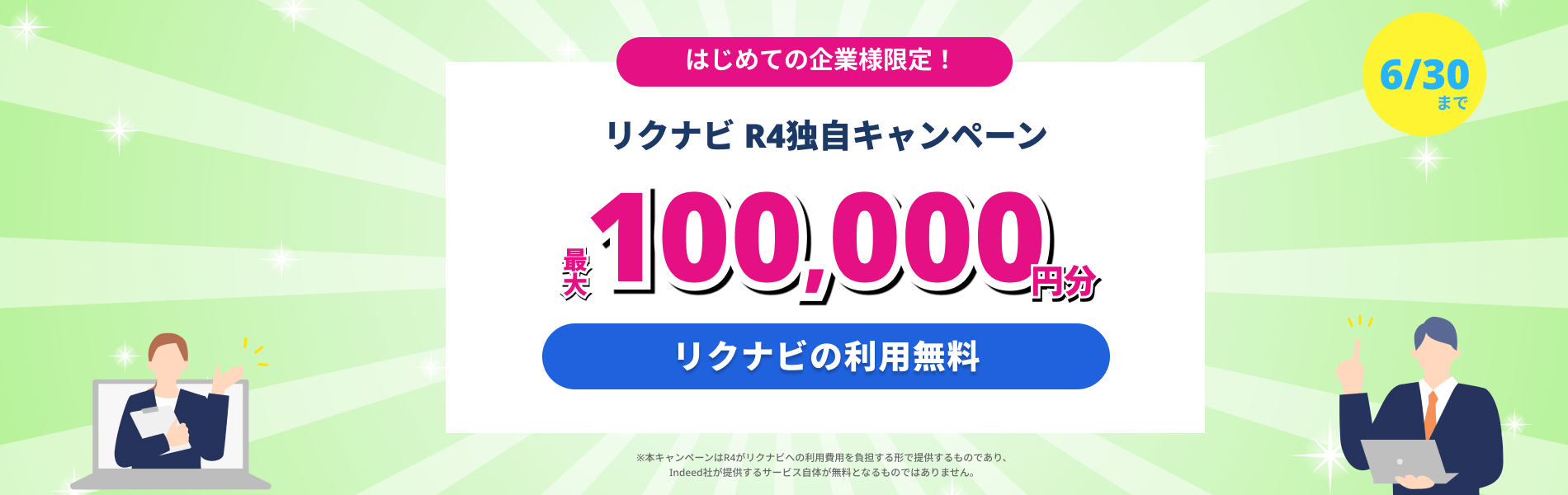 リクナビのR4独自キャンペーン!最大5万円の利用料をR4が負担New!!